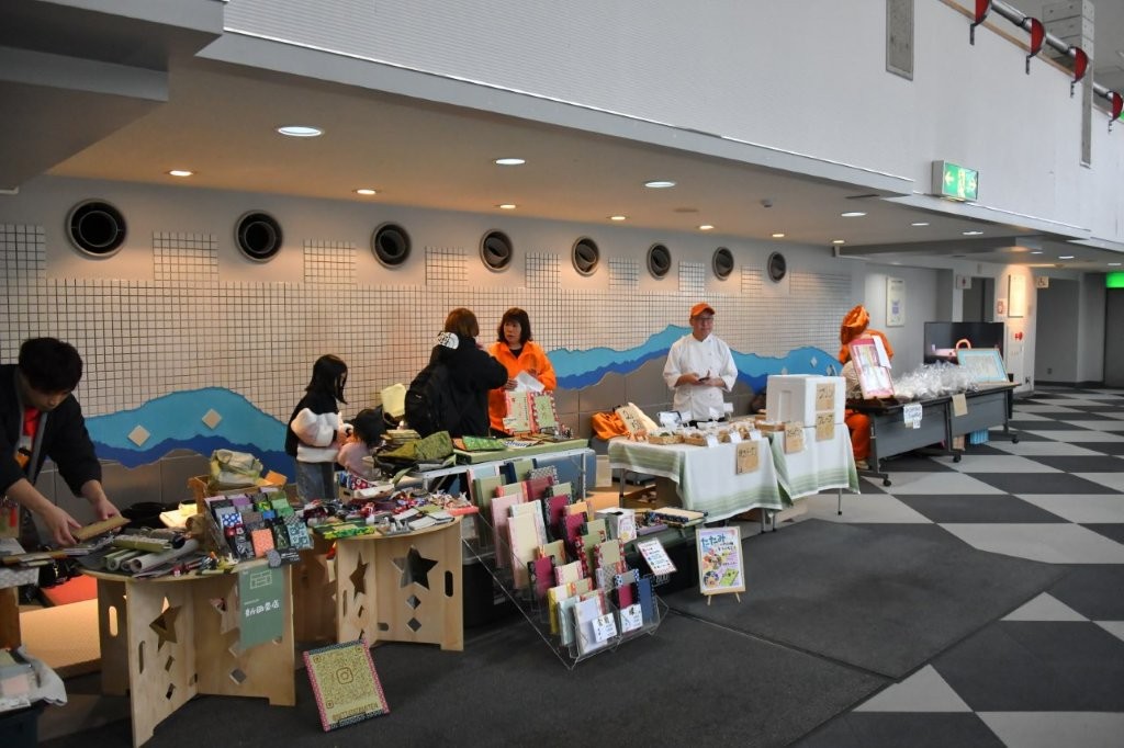 会場ではマルシェを開催。キッチンカーやワークショップ等、7店舗を用意。雨天ではあったが、子どもたちや家族連れでにぎわいました。